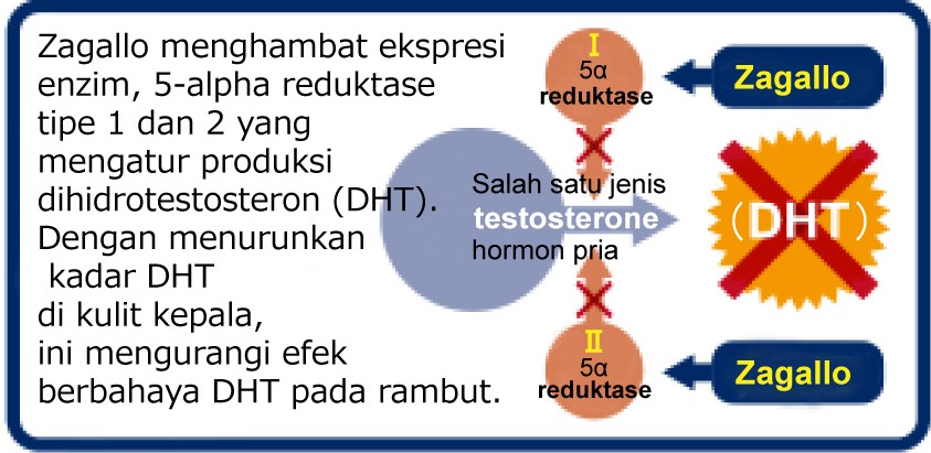 AGA adalah suatu kondisi di mana rambut di dahi dan ubun-ubun kepala, yang biasa terjadi pada pria dewasa, menipis.Dutasteride, komponen Zagallo, telah disetujui oleh Kementerian Kesehatan, Tenaga Kerja dan Kesejahteraan pada tahun 2009 sebagai pengobatan untuk hiperplasia prostat jinak, dan digunakan di Jepang dengan nama obat Avolve, tetapi baru disetujui sebagai pengobatan AGA pada September 2015. Turun. Dengan kata lain, Zagallo dan Avolve memiliki nama yang berbeda, tetapi bahannya adalah dutasteride yang sama Dutasteride telah digunakan di Jepang selama lebih dari 7 tahun sejak 2009 sebagai pengobatan untuk hiperplasia prostat jinak, dan Zagallo, bahan yang sama, bukanlah obat yang sama sekali baru, sehingga dapat dikatakan sangat aman.